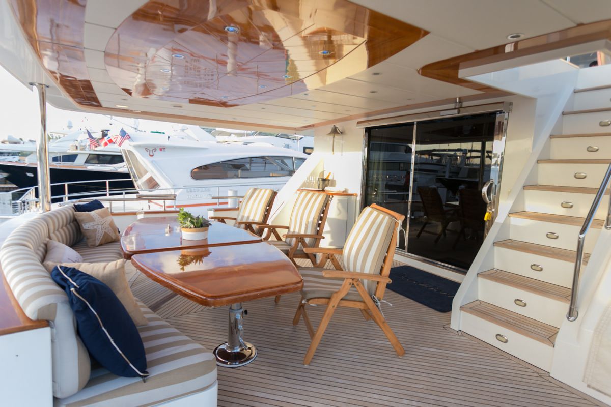 Beachfront is a traditional Hargrave yacht with upgraded soft furnishings, electronics and entertainment accompaniments. She has three spacious decks for guests to enjoy. Her sundeck is partially covered and she offers large sunning beds and a six-person jacuzzi on her flybridge.
